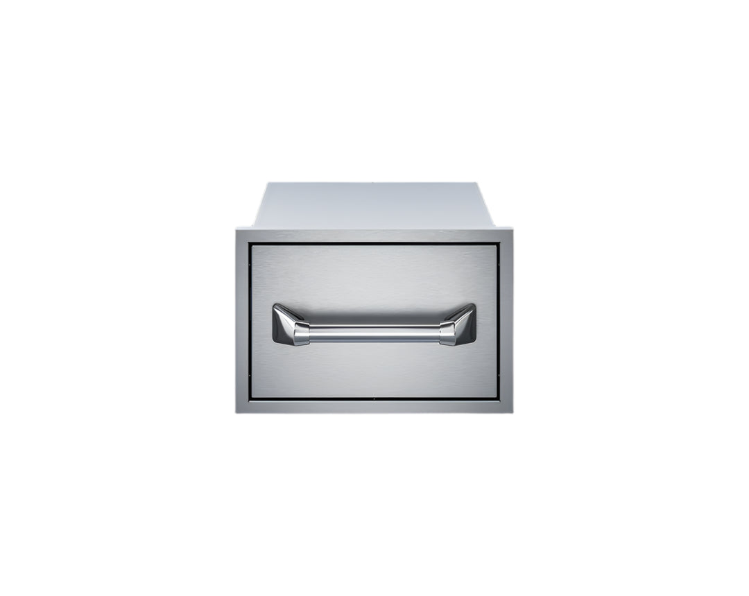 The slide-out drawer holds a standard size paper towel roll and includes a tray for additional cleaning needs. The drawer also has self-latching full extension, removable drawer glides.