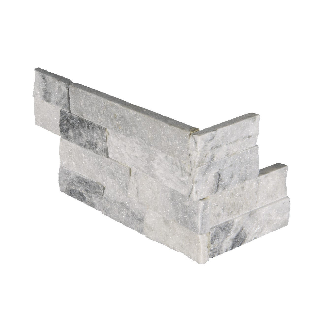 Alaska Gray Stacked Stone panels are crafted from fine split face marble. The soft gray tones are complemented by the natural variance and veining of marble. Use to create beautiful design features including accent walls, fireplace walls, and for exterior projects including cladding of structures and architectural elements including support beams and retaining walls. Matching corners are available to finish off projects.